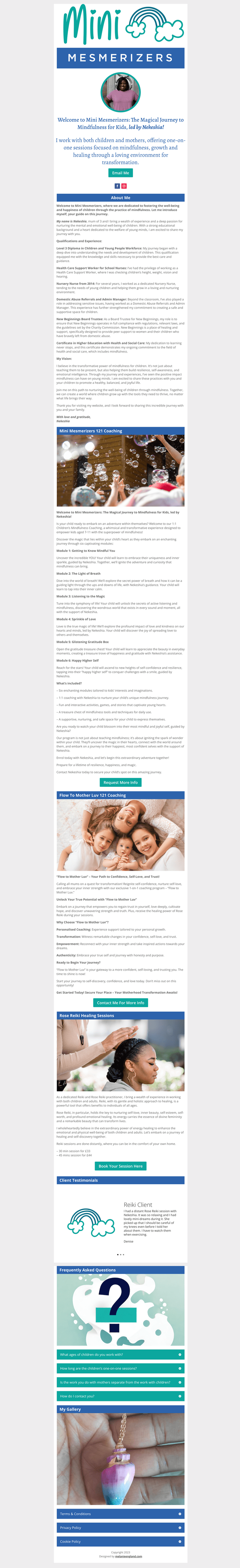 Her unique energetic understanding of what works and what looks good allowed her to design an affordable microsite that perfectly captures the essence of my Children and Parent’s Life Coaching brand and resonates with my target audience.